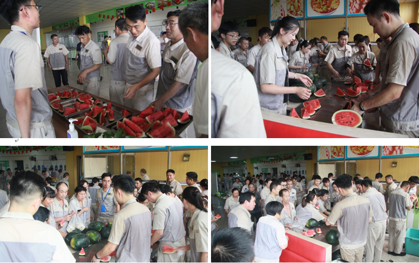 在炎熱的中午,高科家人們忙碌了一上午,來到員工餐廳,等待他們的是一盤盤切好的西瓜,一口下去,既甘甜又清涼,露出滿足的微笑!