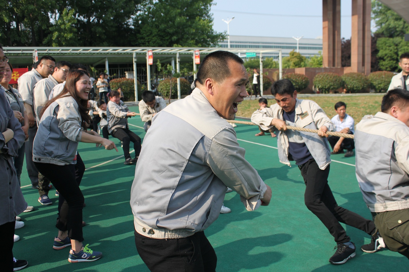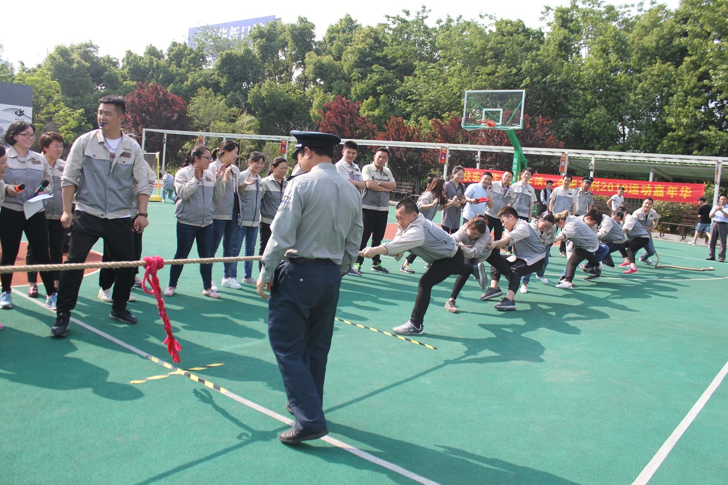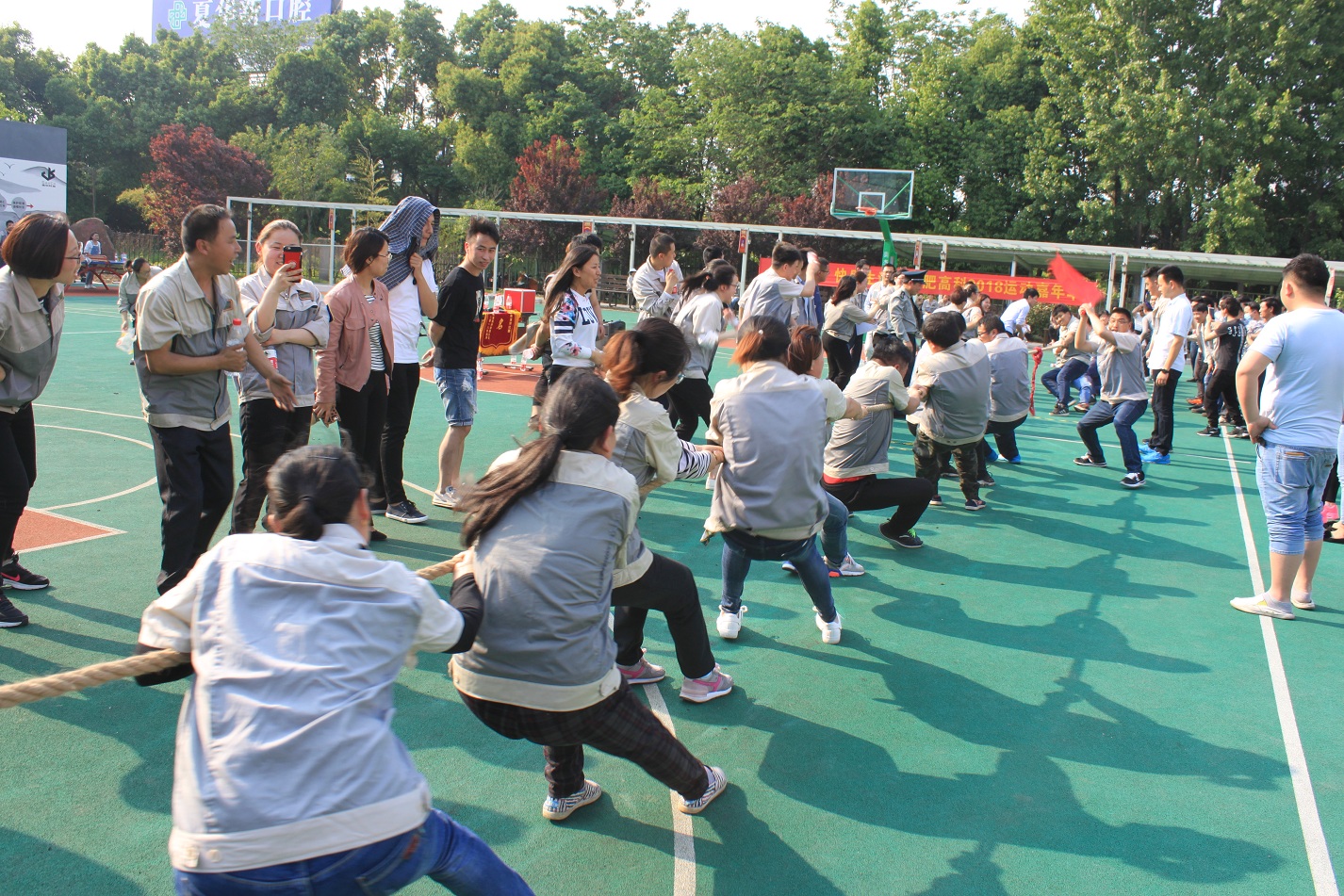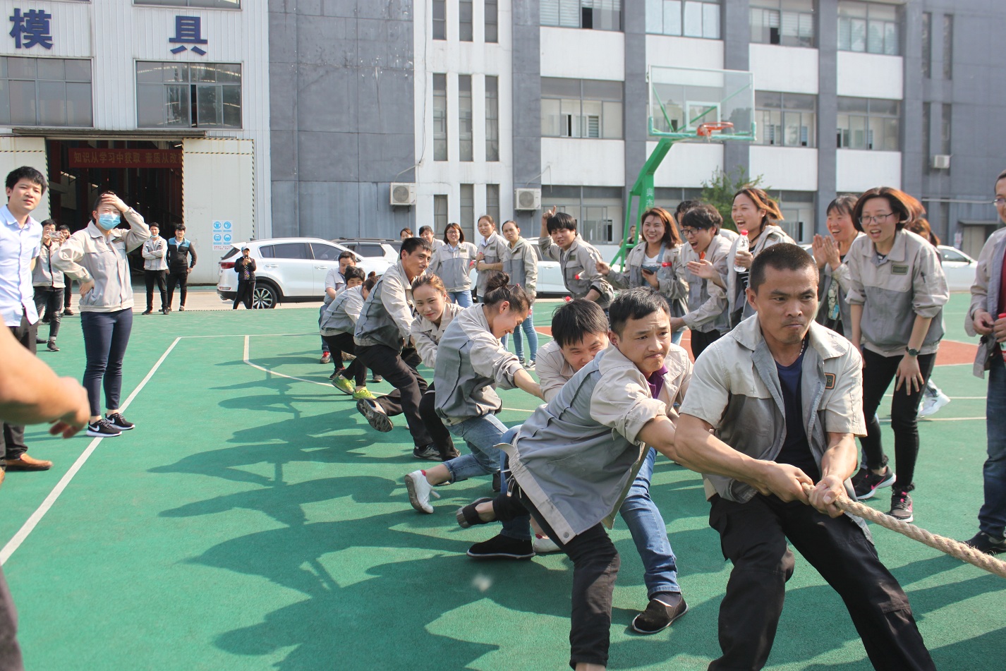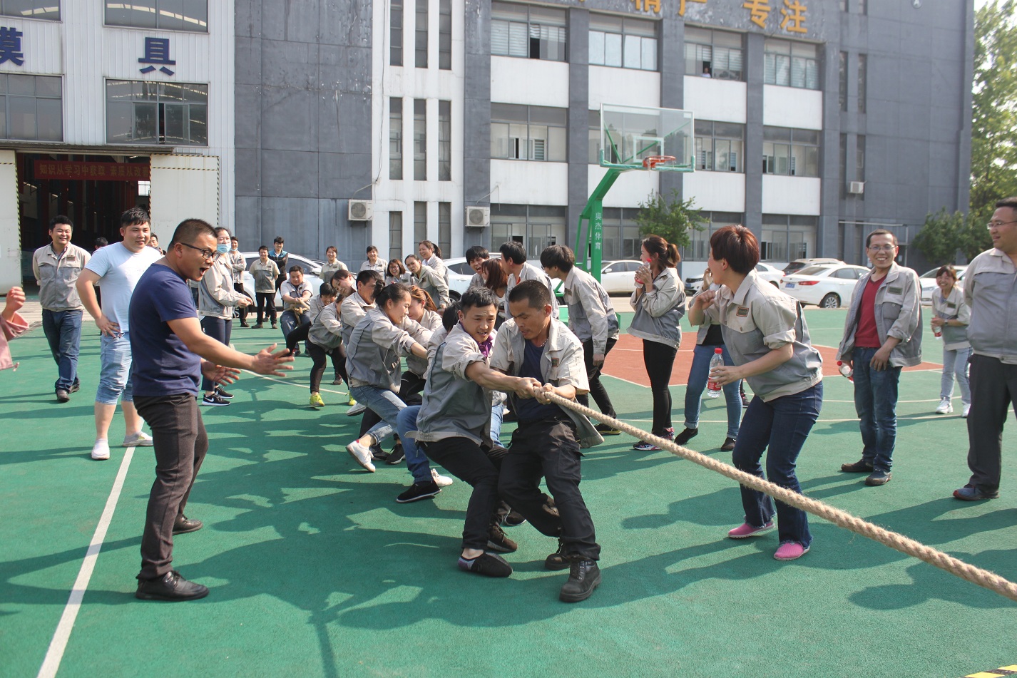 首先進(jìn)行的活動是拔河,參與活動的共有七支隊伍,分別是:鈑金事業(yè)部一戰(zhàn)隊、鈑金事業(yè)部二戰(zhàn)隊、彩晶事業(yè)部戰(zhàn)隊、模具事業(yè)部戰(zhàn)隊、鈑金加工部戰(zhàn)隊、惠爾科戰(zhàn)隊、職能部門戰(zhàn)隊,每個戰(zhàn)隊分別由5男5女組成,共10人。