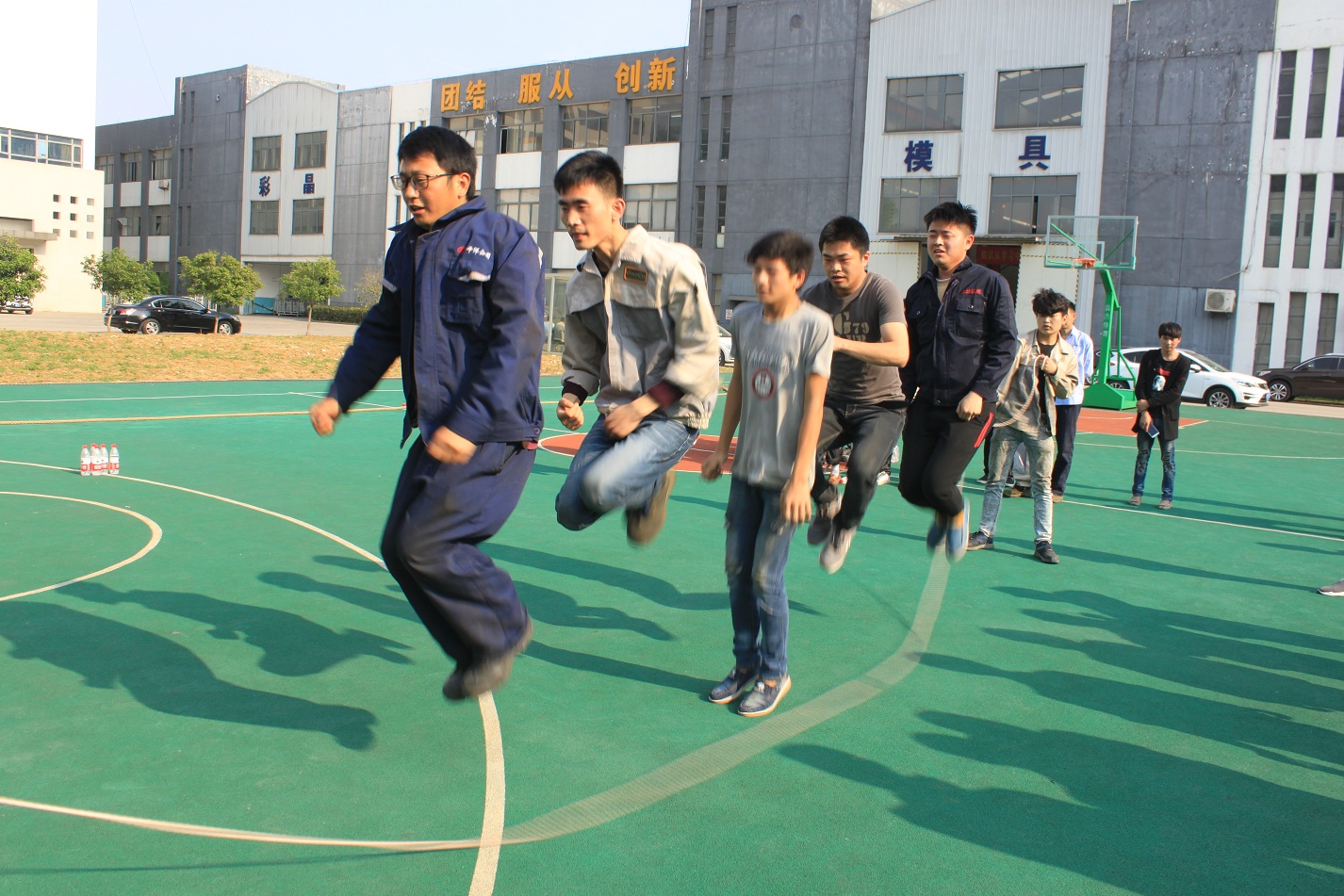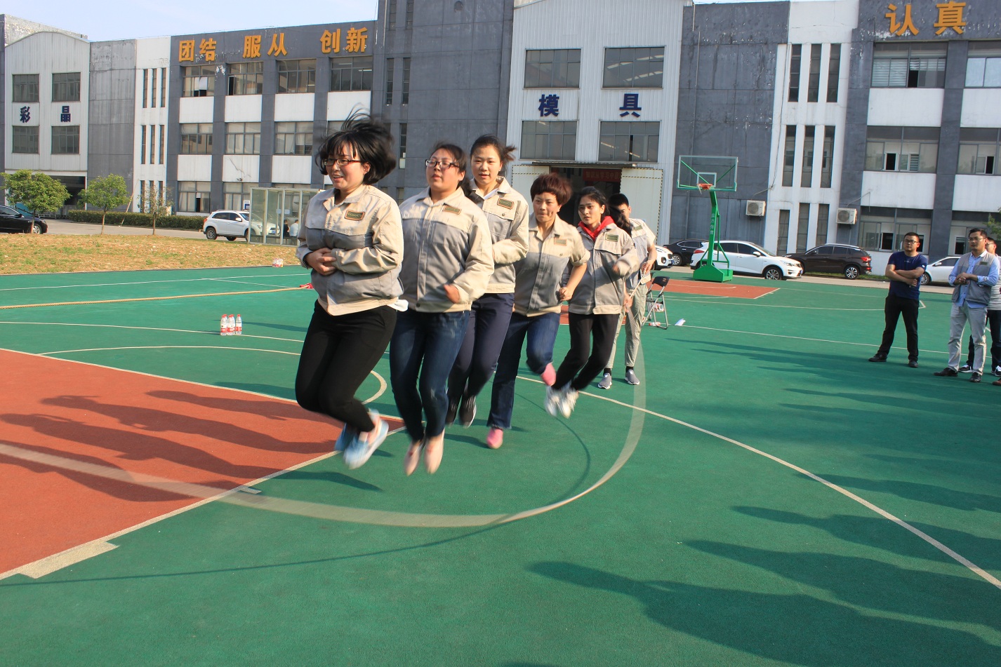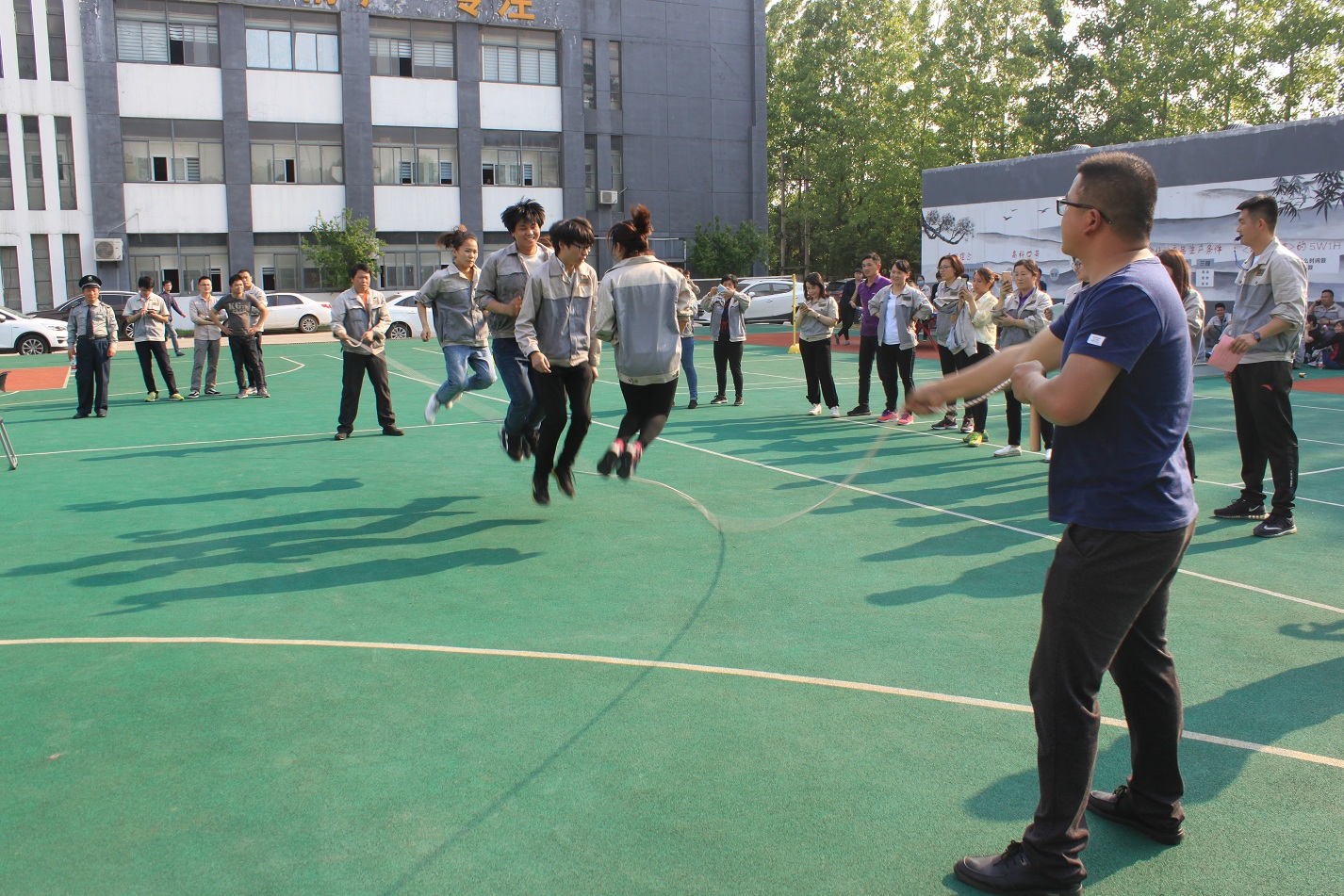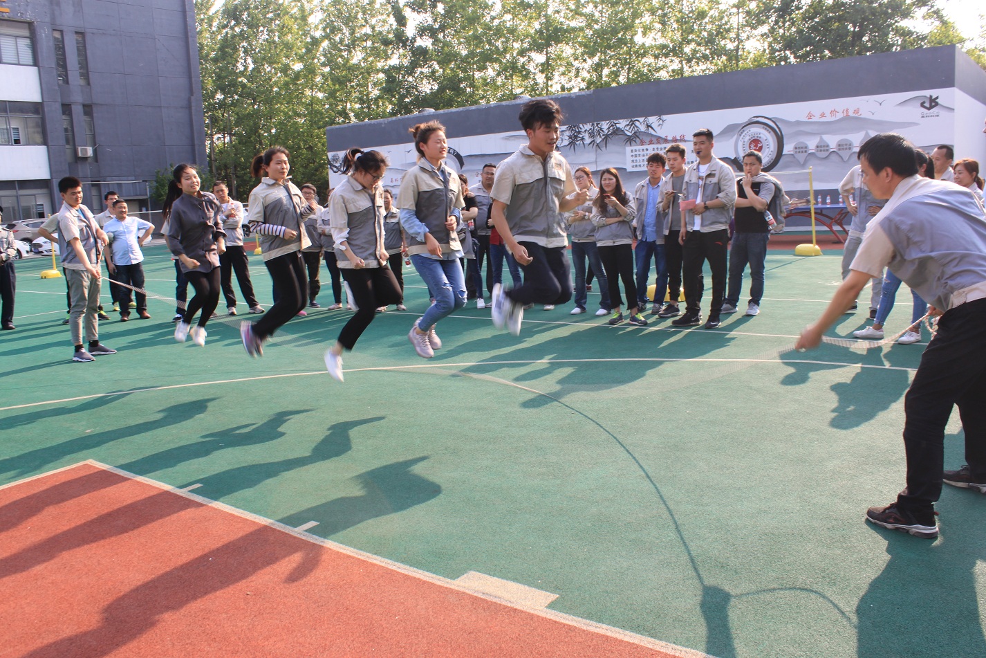 本次活動的第二項比賽是跳繩——團(tuán)體跳,每個事業(yè)部各派出一隊,共六支隊伍,每隊七人,男女不限,兩人甩繩,五人跳,這樣既展現(xiàn)了團(tuán)隊的默契程度,又體現(xiàn)了團(tuán)隊的協(xié)作精神,這也是合肥高科的主旨文化。跳繩的規(guī)則是一分鐘時間內(nèi),以團(tuán)隊成功跳起的個數(shù)計算,跳繩過程中可以停頓,以一分鐘結(jié)束時的次數(shù)為最后成績。